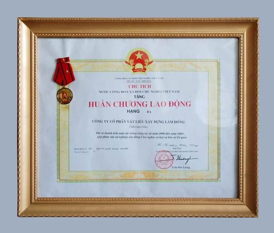 • HUÂN CHƯƠNG LAO ĐỘNG HẠNG BA do Chủ tịch nước Cộng hòa Xã hội Chủ nghĩa Việt Nam trao tặng năm 2005.